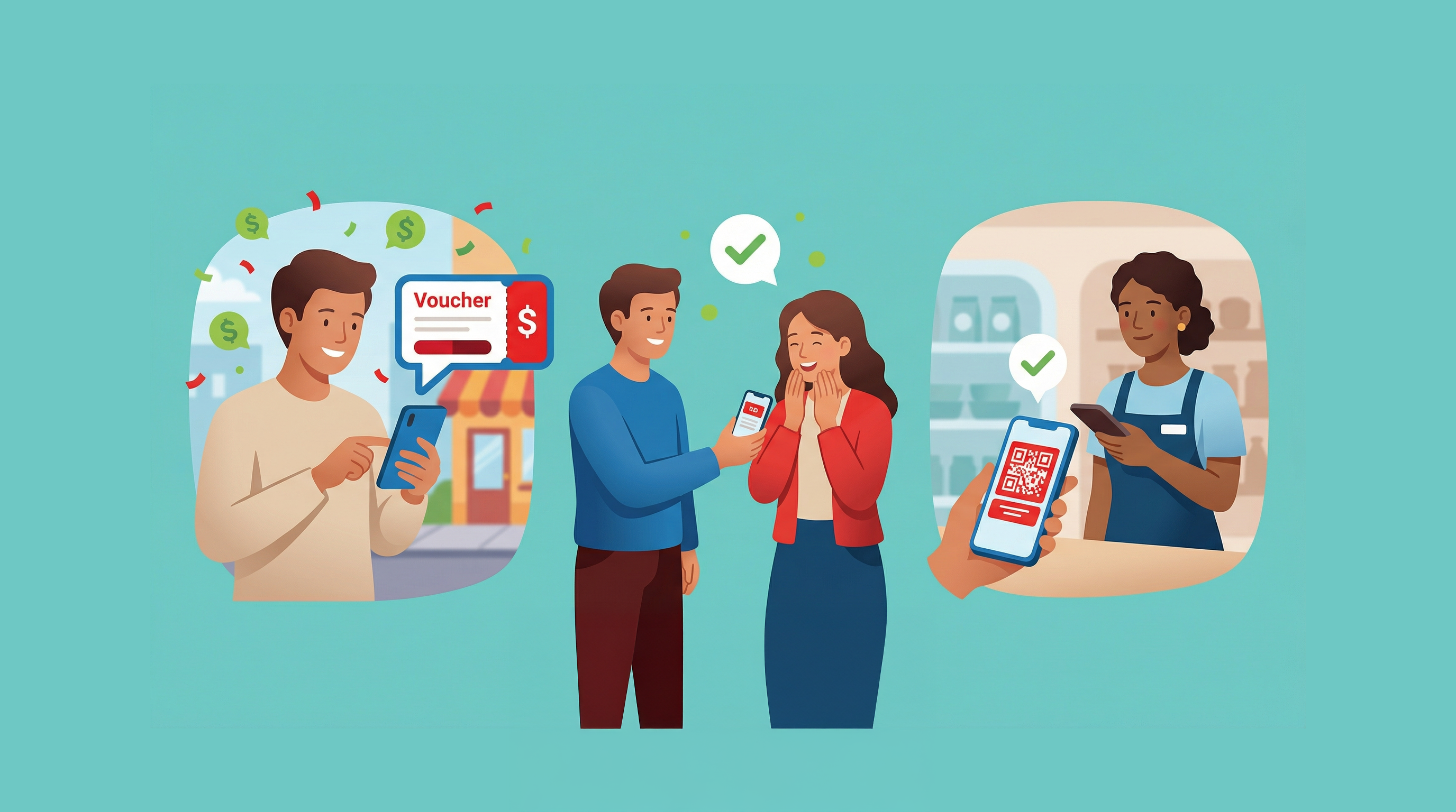 3) Redeem vouchers via mobile-friendly QR code
